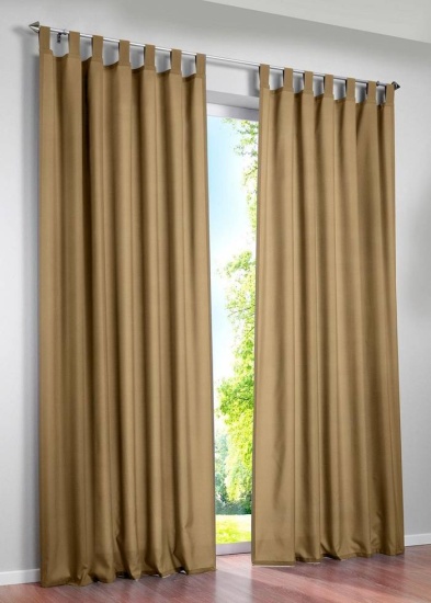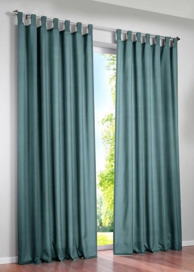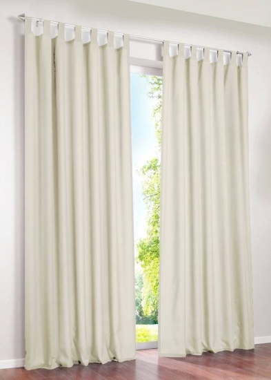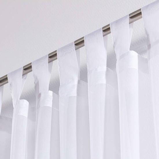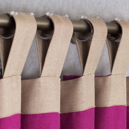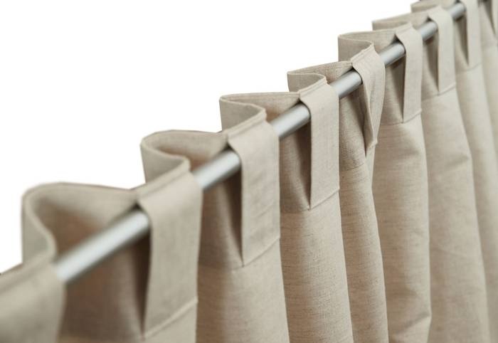 Las prácticas cortinas con bisagras son una de las opciones de escaparatismo más populares. Combinan elegancia y facilidad de uso. Las trabillas se cosen directamente a la parte superior de la tela de la cortina. Este corte permite quitarlas y colgarlas fácilmente. Les da un aspecto pulcro y acabado.