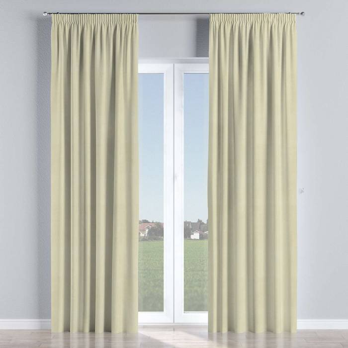 Caracterizadas por su sencillez y brevedad, las cortinas lápiz deben su nombre a sus característicos pliegues verticales. Se forman mediante el uso de una cinta especial para cortinas cosida al borde superior del producto.