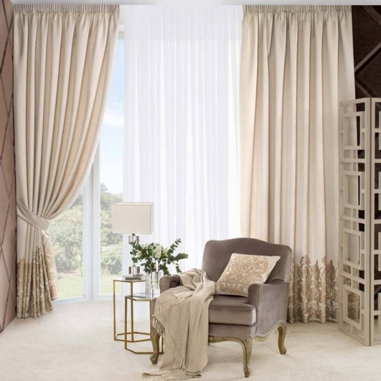 Las cortinas están confeccionadas con tejidos tupidos, gracias a los cuales se cubren bien y protegen eficazmente la habitación de la penetración de la luz solar.