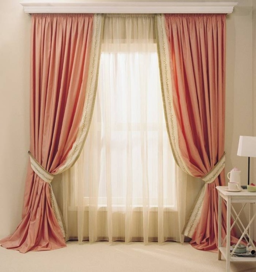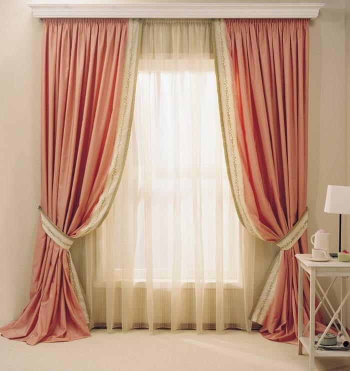 Las cortinas están bien combinadas con tul, gracias al cual es posible dejar entrar una luz suave. Si lo desea, puede utilizar un modelo sin tul.
