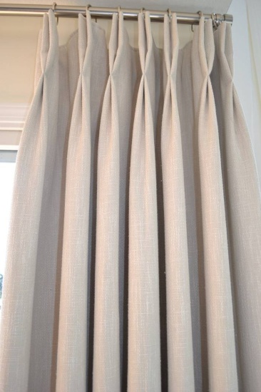 Grupos de pliegues en las cortinas se colocan a igual distancia, cada uno de ellos está sujeto a ganchos, que les da elegancia y prolijidad. Elegante y conciso.
